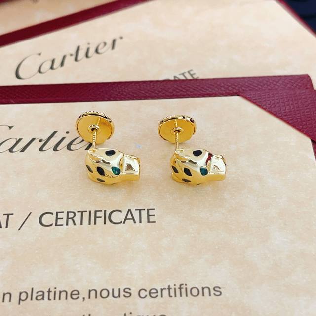 Cartie*最新款卡地亚浅金色豹子耳钉 一致Zp黄铜材质,非常的上镜设计很特别值得入手高级手工坊系列 DDD