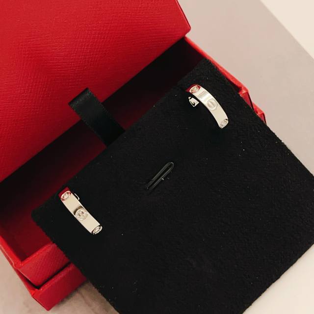 / Cartie*最新款卡地亚银色光面镶钻耳钉 一致Zp黄铜材质,非常的上镜设计很特别值得入手高级手工坊系列