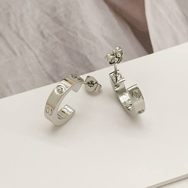 Cartie*最新款卡地亚银色光面镶钻耳钉 一致Zp黄铜材质,非常的上镜设计很特别值得入手高级手工坊系列