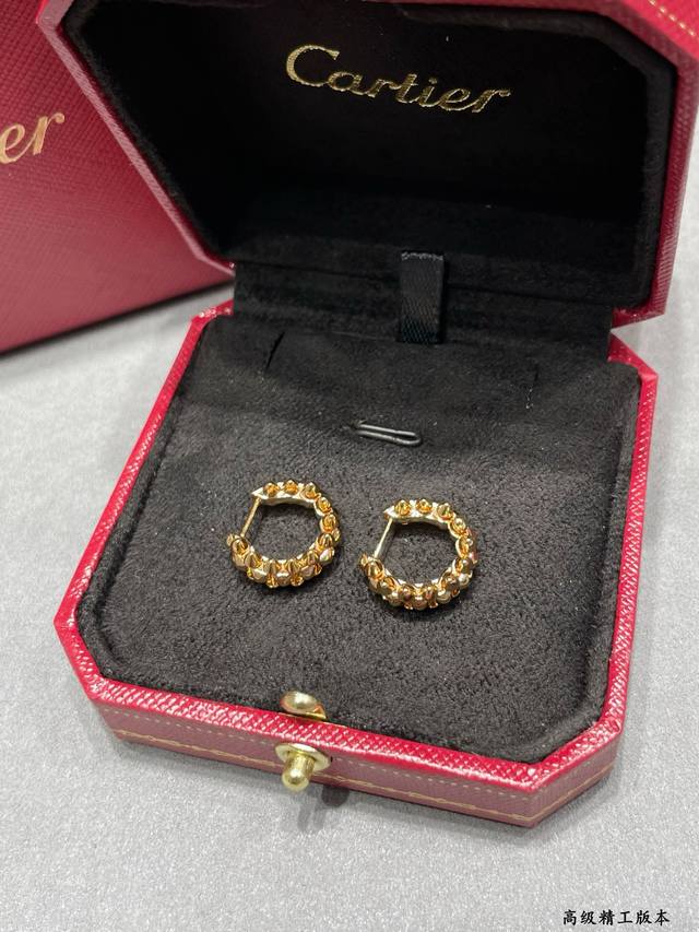 Cartie*最新款卡地亚银色镶钻圆形双环扣耳环 一致Zp黄铜材质,非常的上镜设计很特别值得入手高级手工坊系列