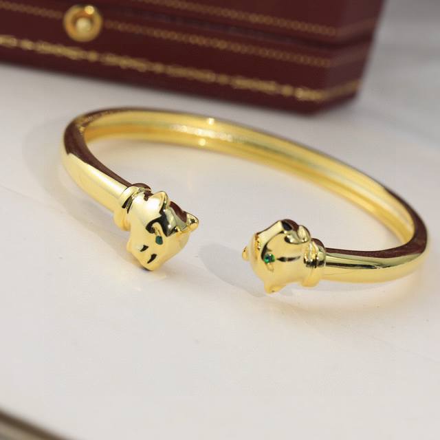 / 光金版霸气豹手镯。PanthèRe De Cartier豹子手镯,电镀18K金!圆形明亮式切割钻石。祖母绿,缟玛瑙。亚金材质男女都可佩戴哦刻有Logo