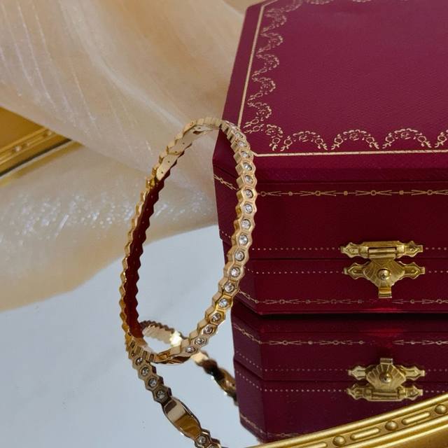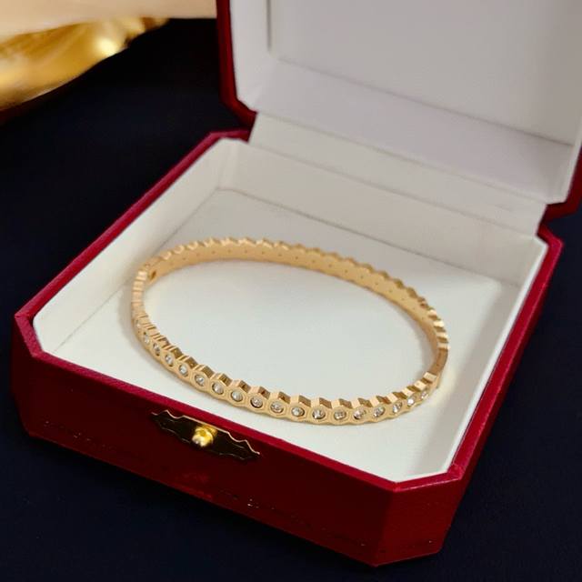 / 卡地亚手镯 高端定制版本 镶嵌钻工艺 V金材质 经典而时尚风格 用凌厉线条重构爱情美学!打破常规,镶嵌钻设计反而成就高级感天花板 无需浮华堆砌,爱本应纯粹如初