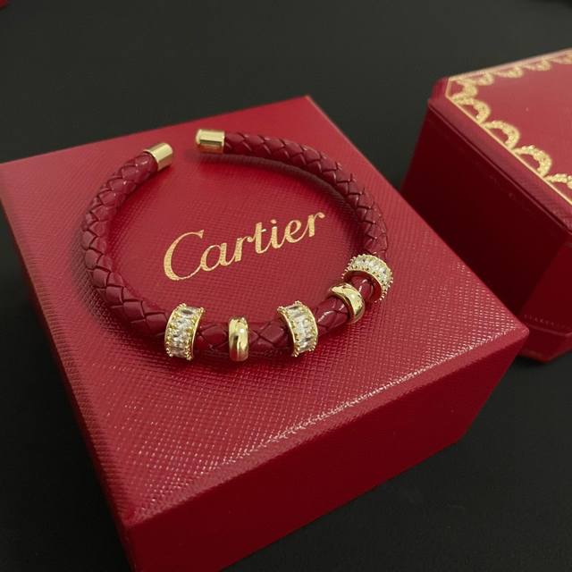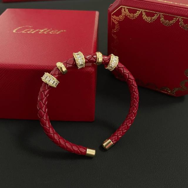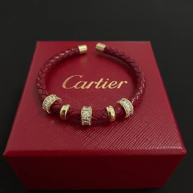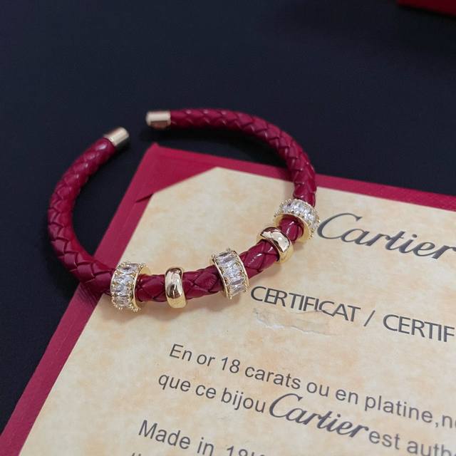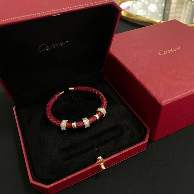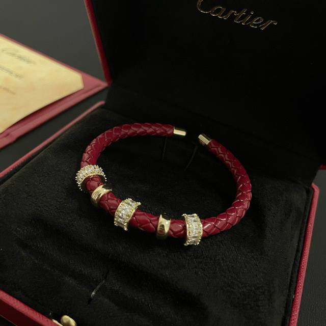 / 卡地亚皮绳手镯 高端定制版本 镶嵌钻工艺 V金材质 经典而时尚风格 用凌厉线条重构爱情美学!打破常规,镶嵌钻设计反而成就高级感天花板 无需浮华堆砌,爱本应纯粹如