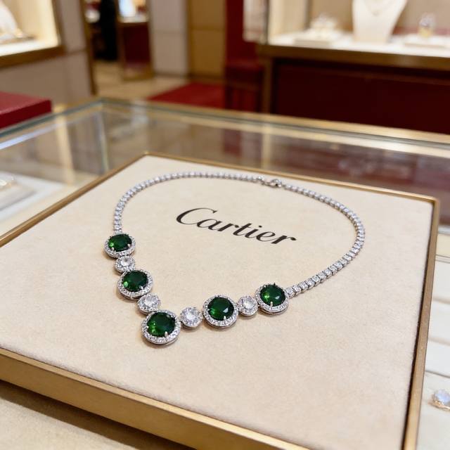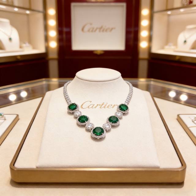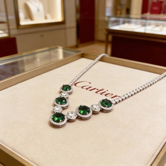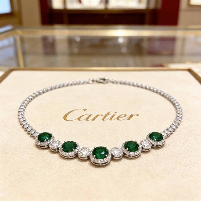 卡地亚祖母绿钻项链 高端定制版本 镶嵌钻工艺 V金材质 经典而时尚风格 用凌厉线条重构爱情美学!打破常规,镶嵌钻设计反而成就高级感天花板 无需浮华堆砌,爱本应纯