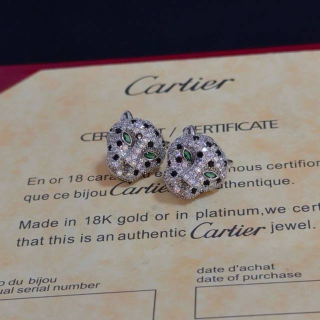 卡地亚豹子耳钉 高端定制版本 镶嵌钻工艺 V金材质 经典而时尚风格 用凌厉线条重构爱情美学!打破常规,镶嵌钻设计反而成就高级感天花板 无需浮华堆砌,爱本应纯粹如