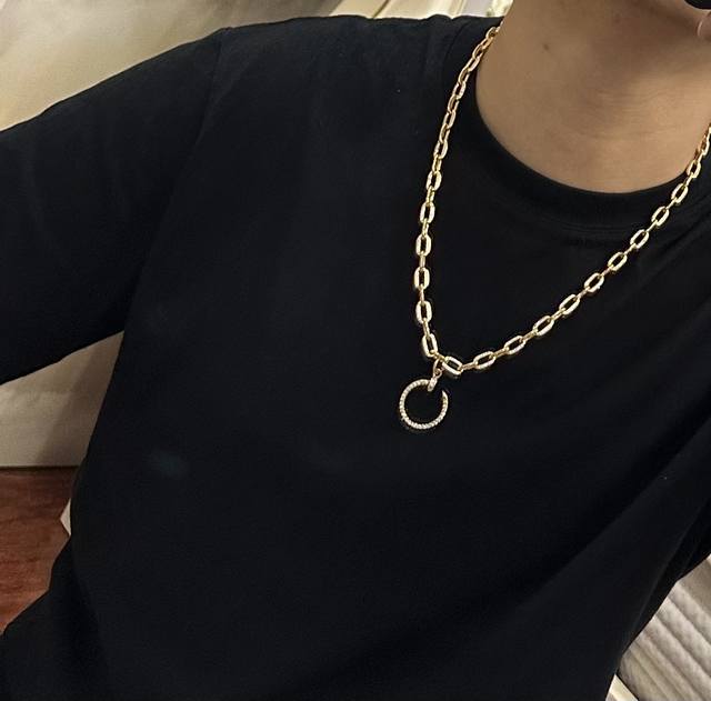 新款带钻卡地亚项链V金材质系列 品相完美,细节无敌,那种独特的色泽完全无可挑剔,再缀以经典指环外形设计,简约之余却又优雅夺目,V金纯手工的组合更显气色,上手雅致动人。男女同款