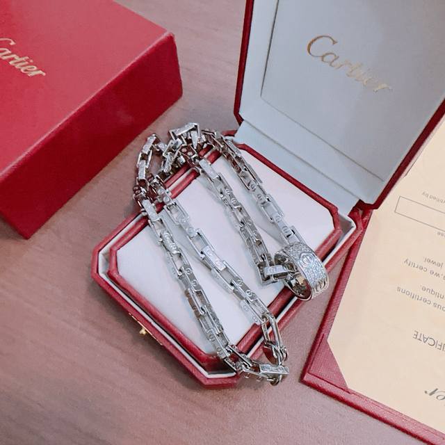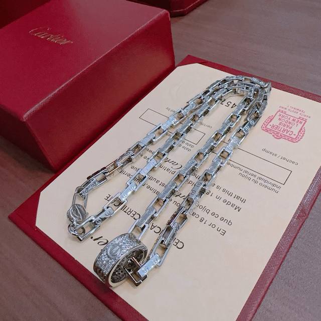 新款带钻卡地亚项链V金材质系列 品相完美,细节无敌,那种独特的色泽完全无可挑剔,再缀以经典指环外形设计,简约之余却又优雅夺目,V金纯手工的组合更显气色,上手雅致动人。男女同款