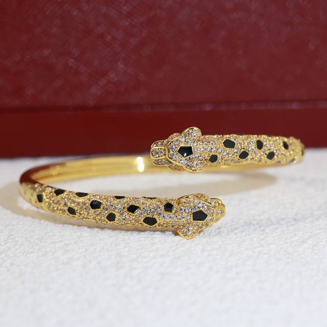 / 霸气豹头满钻爆款手镯。PanthèRe De Cartier豹子手镯,18K黄金!圆形明亮式切割钻石。猎豹 作为卡地亚的标志性动物形象,最早出现于1914年。路