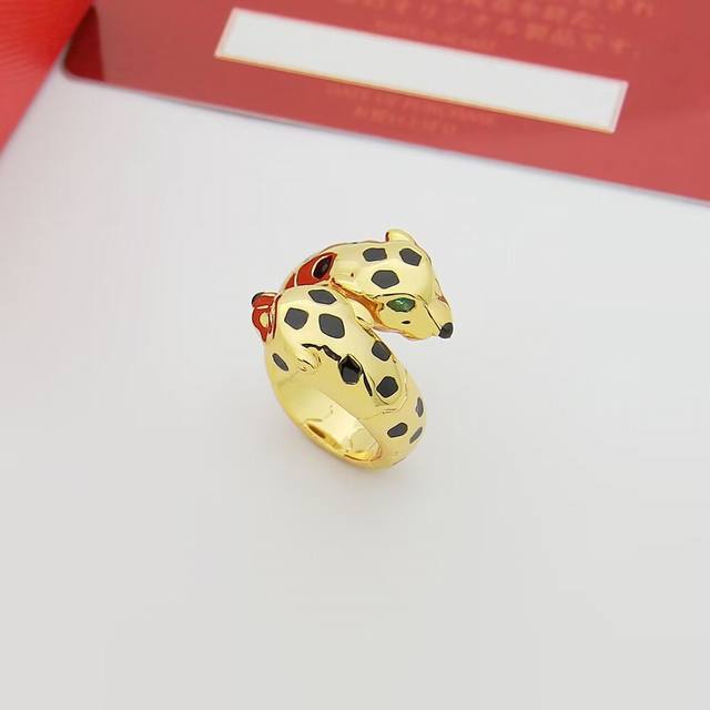 Cartier 卡地亚豹子戒指双头戒指 斑点猎豹戒指 出货 经典贵族范儿、奢华满钻抚媚豹子设计 亚金材质电镀18K金!搭配祖母绿豹眼 使豹子神态更加动人霸气满钻豹身女神必备 戒指均码
