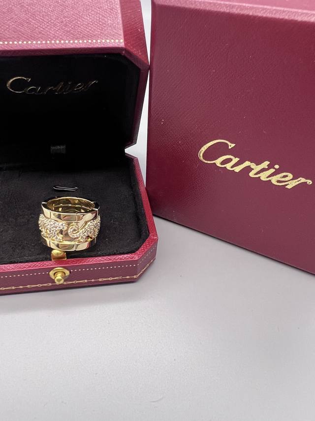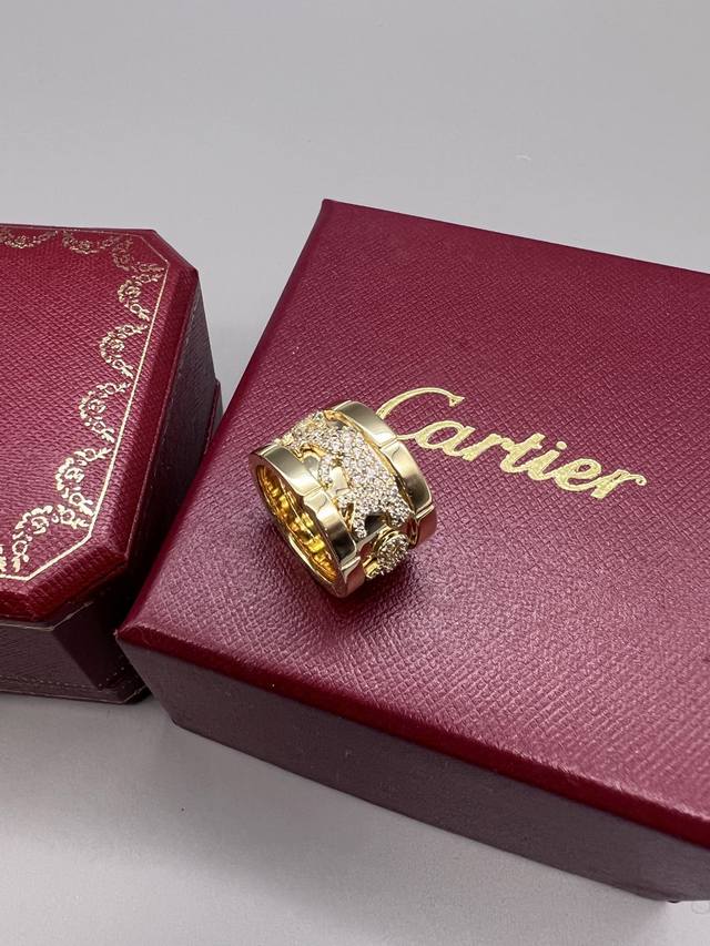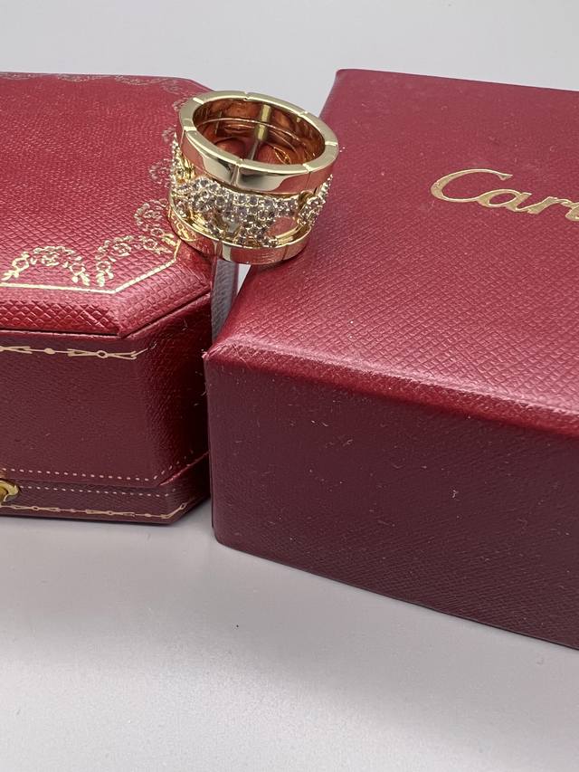豹子戒指 豹戒指霸气双豹头满钻爆款戒指PanthèRe De Cartier花纹豹手镯,18K白金色!圆形明亮式切割钻石。祖母绿,猎豹...