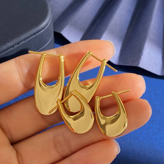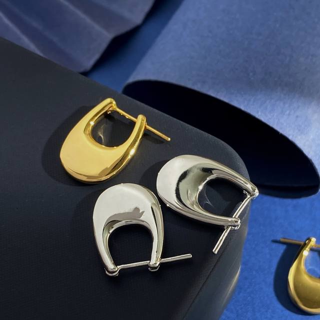 小号 赛琳Celine时尚Ins简约大气金属光面椭圆水滴形小号耳环 黄铜材料 金银2个色 重约6.5G 尺寸约2Cm*1.45Cm*0.3Cm