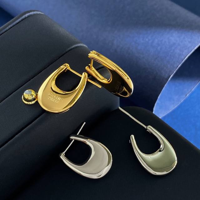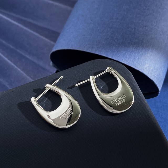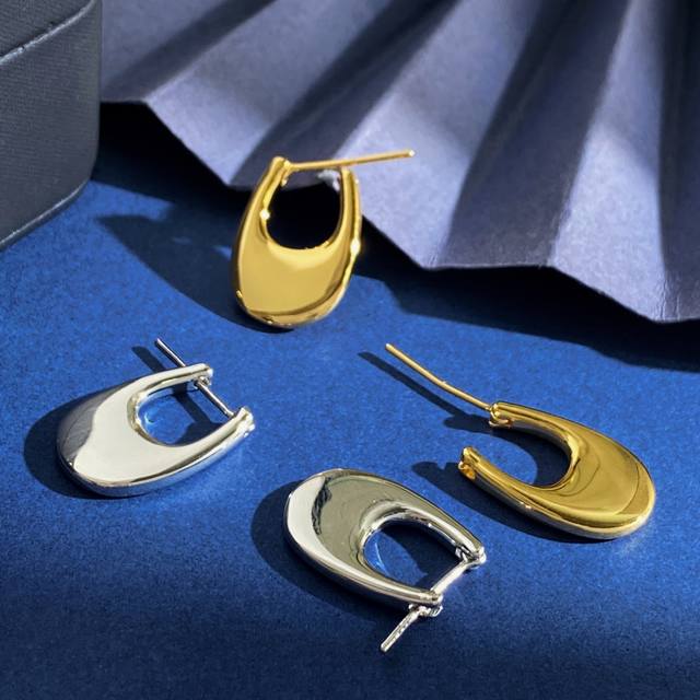 / 小号 赛琳Celine时尚Ins简约大气金属光面椭圆水滴形小号耳环 黄铜材料 金银2个色 重约6.5G 尺寸约2Cm*1.45Cm*0.3Cm