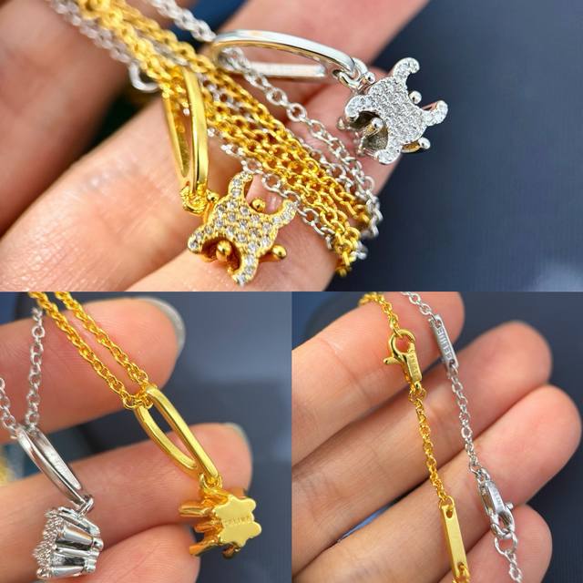 / 赛琳Celine满钻凯旋门吊坠项链 黄铜材料镀金 2个色:黄金色 白金色