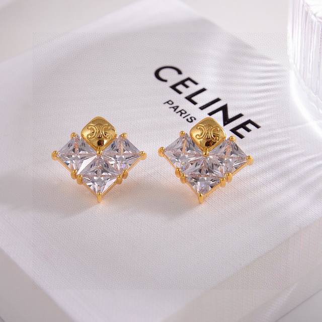 Celine 赛琳方形耳钉 耳环 经典金色系 小巧精致可爱 百搭 。复古造型设计 金色特别显白 穿衣搭配不挑人。