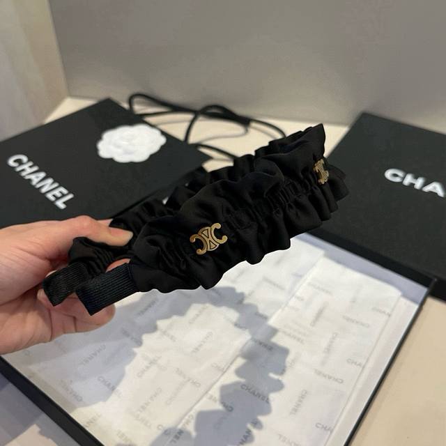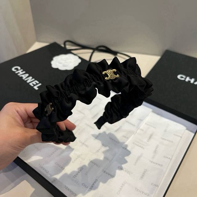 配包装 Celine 赛琳 网红经典缎面发箍,佩戴舒适无压力,造型搭配必备头饰!非常时尚百搭!女神必备!名媛范儿。