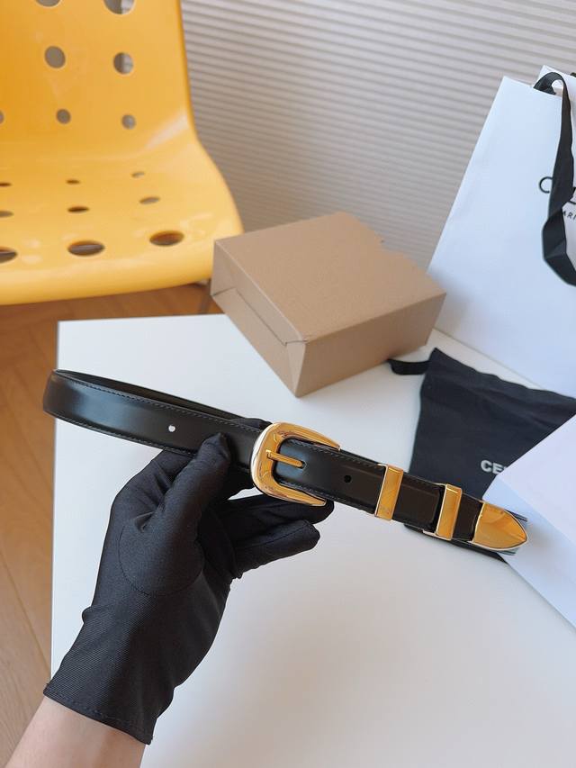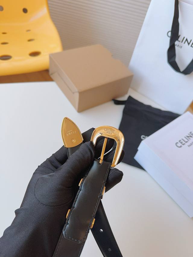 Celine 赛琳 的品牌形象出自女性之手,专为女性打造,采用舒适材料精工细作。展现女性风采的法国奢侈品牌。赛琳品牌风格浓烈、洒脱独立,让女性时刻挥洒自如,彰显温柔魅力。时尚百搭款,皮带宽度:25Mm