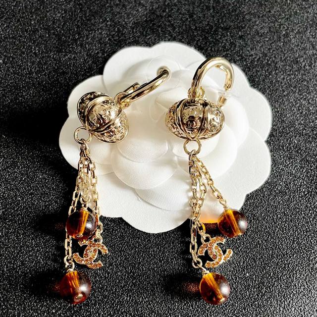 香奈儿四叶草耳钉,更修饰脸型。以金色金属边环绕给人一种神秘、成熟、复古的感觉。双C金属标志树脂撞色经典百搭!耳钉