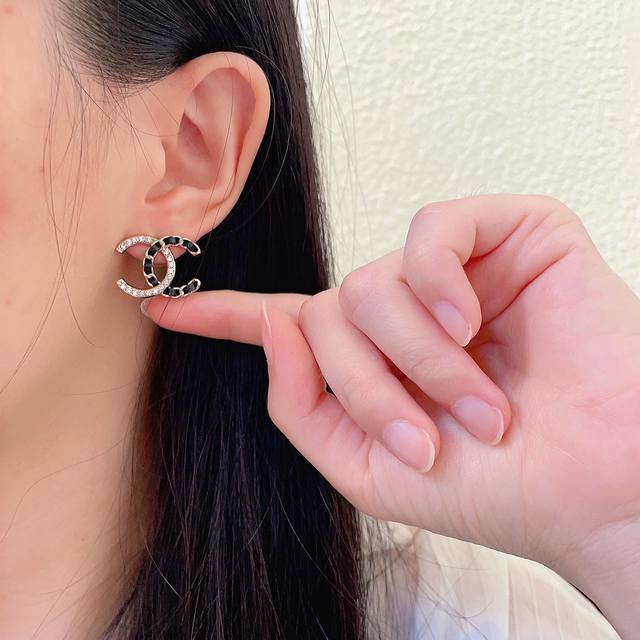 香奈儿心形耳钉,更修饰脸型。以金色金属边环绕给人一种神秘、成熟、复古的感觉。双C金属标志树脂撞色经典百搭!耳钉