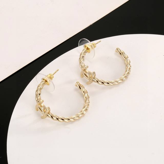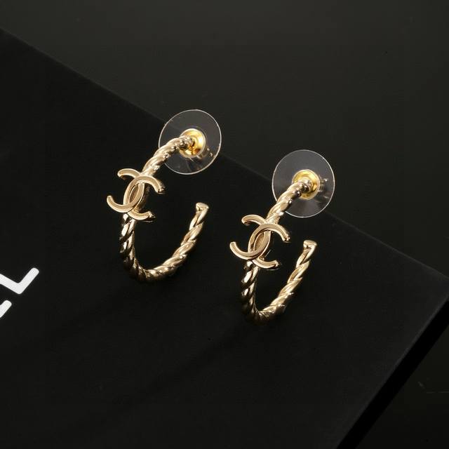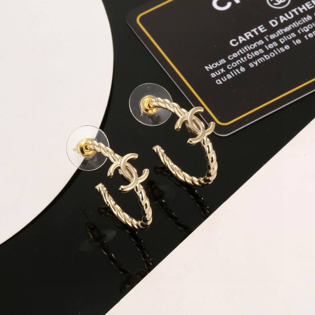 Chanel 香奈儿经典半圈金色双C耳钉 这款随意搭配都是非常好看百搭时尚单品 日常款 很修饰脸型 很上档次的 很优雅气质 耳环 DDD