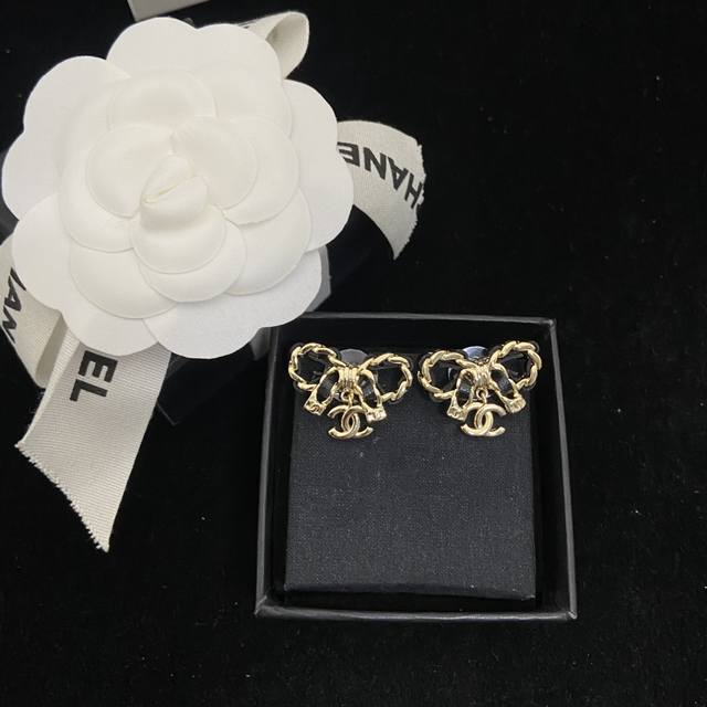 / 今日推荐 香奈儿蝴蝶结双C耳钉 精致Mini 闭眼入