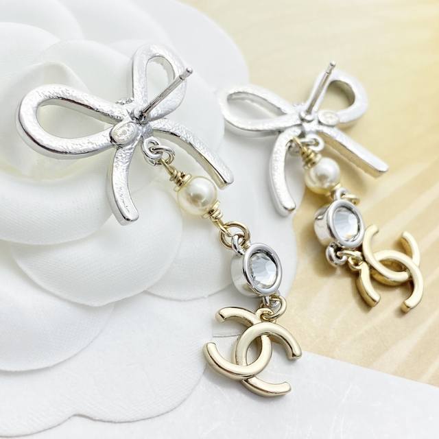 今日新款 编码E3209 0257820 香奈儿耳钉热销爆上新 Chan 25 银色水钻蝴蝶结流苏耳环 清冷银色满钻镂空蝴蝶结搭配珠钻流苏吊坠浅金小双C 金银拼色设计使整体更加饱满立体,灵动又精致甜美 上耳修饰脸型又显千金感,约会下午茶Or出席活动佩戴都精致感满满