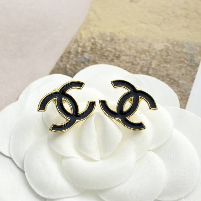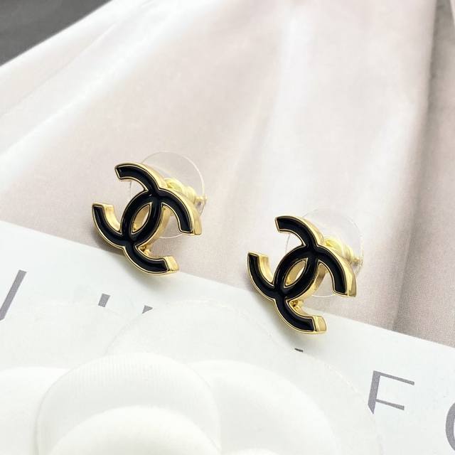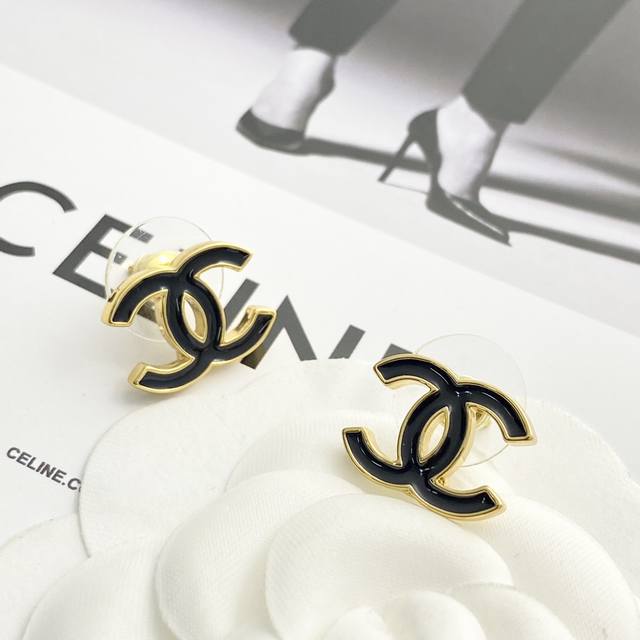 今日新款 编码E3323 0237820 香奈儿耳钉热销爆上新 Chan 26 黑金珐琅双C耳钉 黑珐琅搭配金属底座大气出挑,浅金边增添了精致感 经典黑金配色,