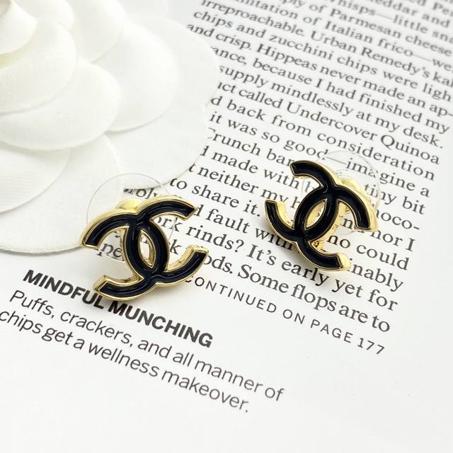 Chan 26 黑金珐琅双C耳钉