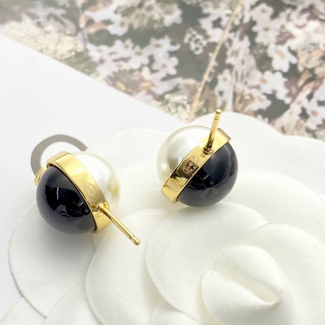 Chan 25 Cc黑白双色珍珠球耳钉