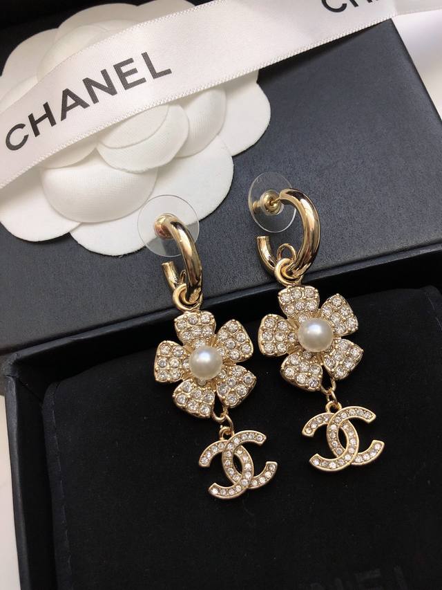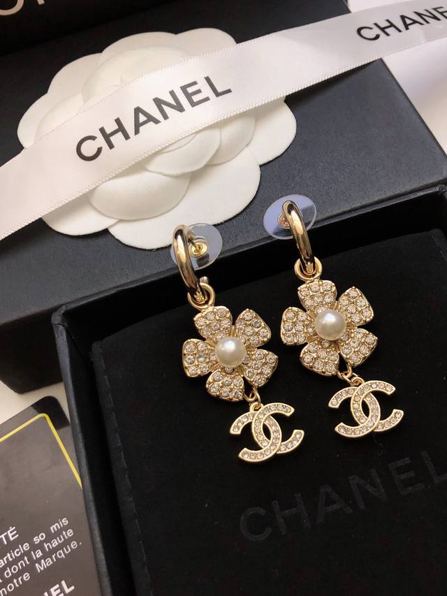 编码E2415 香奈儿耳钉热销爆上新 Chan 23珍珠吊坠双C小花耳钉...