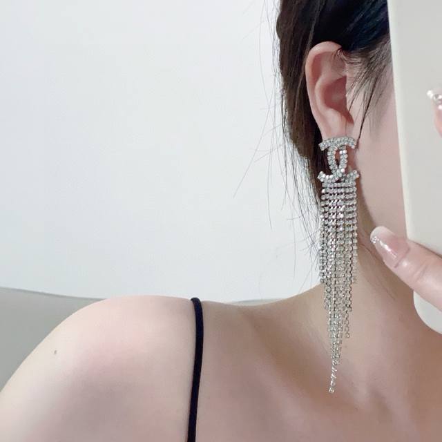 小红书推荐新款耳钉Chanel 香奈儿满钻流苏长款耳环▲非常漂亮 专柜一致黄铜材质非常非常简洁大方不失小女人气质,日常晚会各种场合适用来,分分钟帮你们节省数千大