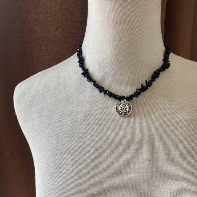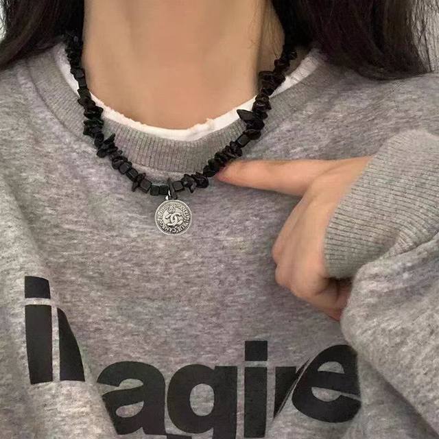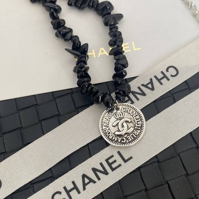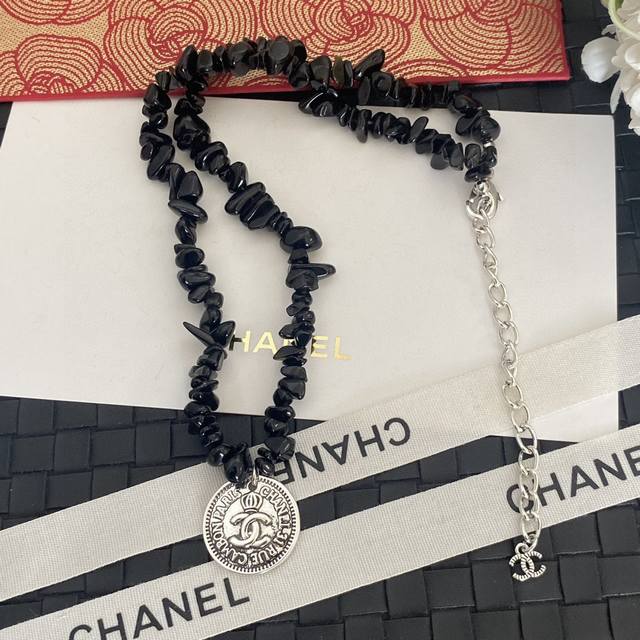 抢手好货快Chanel小香专柜最新不规则黑玛瑙圆牌精雕字母项链 非常不错的款式推荐香奈儿中款 这款 搭配方牌穿搭黑色经典 设计多元素每一层设计每款都是经典 搭配