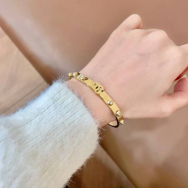 新款香奈儿Chanel六颗闪耀的钻手镯超重工Bling Bling,颜色搭配得非常好高级感 女神气质高端 精钢材质不过敏不褪色。一比一精美工艺,经典至极的魅物,