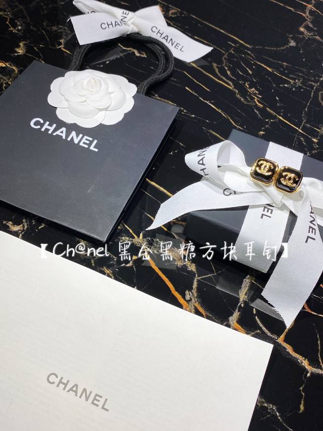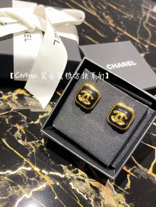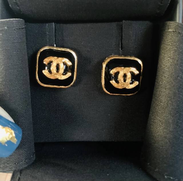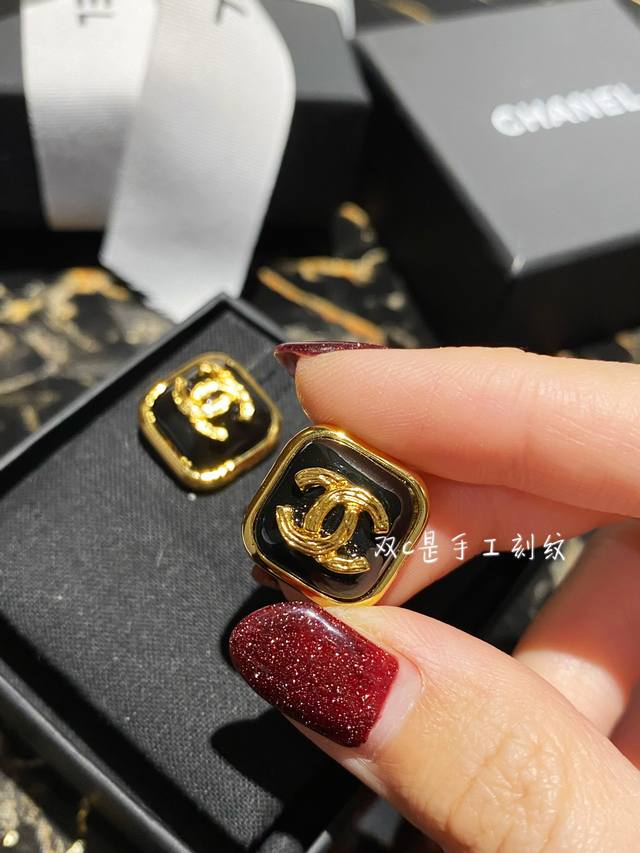 / 编号 Xed0103 Chanel 小香黑色滴油方形双C耳钉,高端品质,专柜同材质,真正黄铜,离子电镀,925银针,独家实拍图做工精致细腻,重工版本,超级仙女唯
