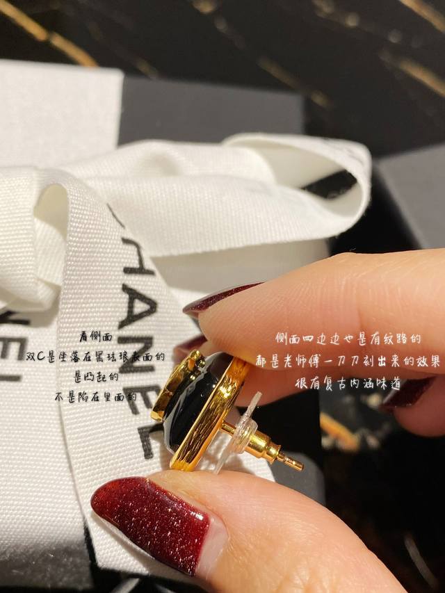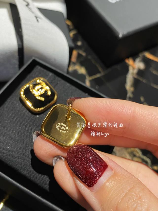 编号 Xed0103 Chanel 小香黑色滴油方形双C耳钉,高端品质,专柜同材质,真正黄铜,离子电镀,925银针,独家实拍图做工精致细腻,重工版本,超级仙女唯