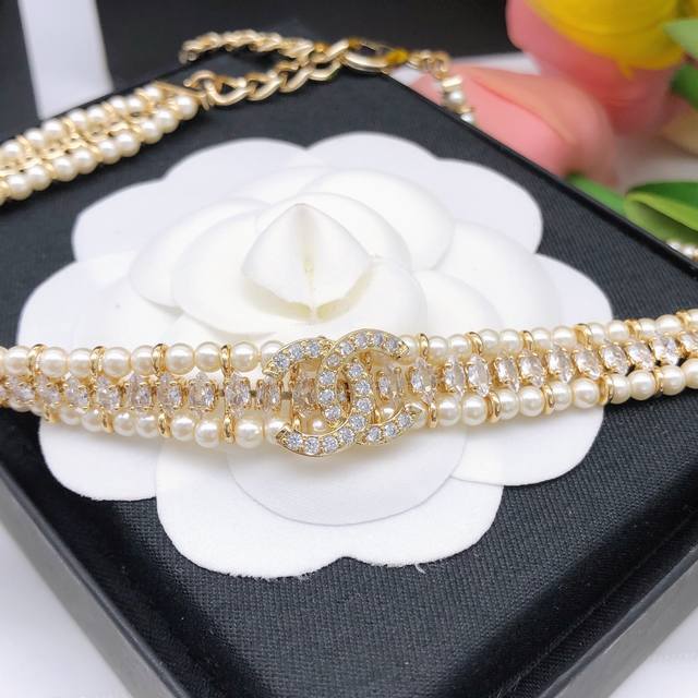 编号Xxl0028 DDD 香奈双层珍珠水钻Choker ♀ DDD 重工打造精致 DDD 富家千金必备神器 DDD