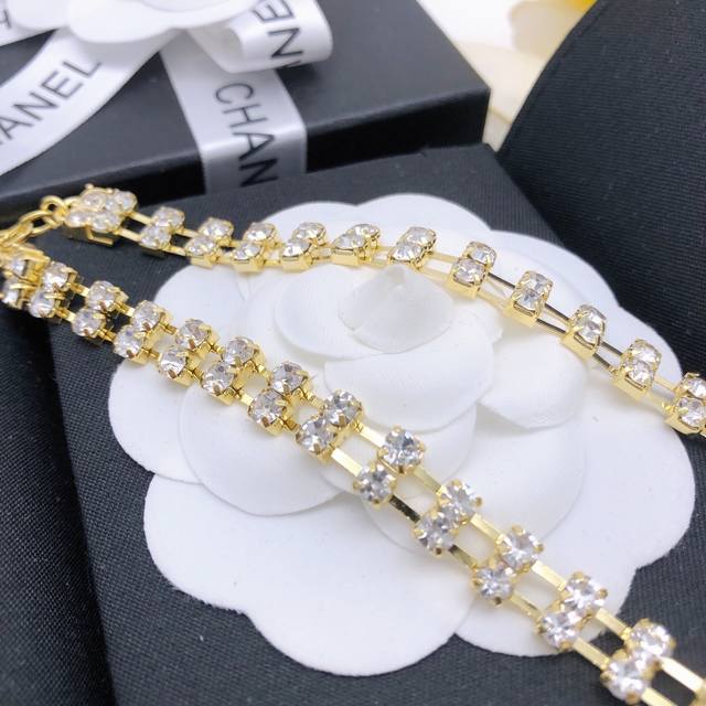Chanel 小香新款双层双排满钻手链项链 元素珍珠手链