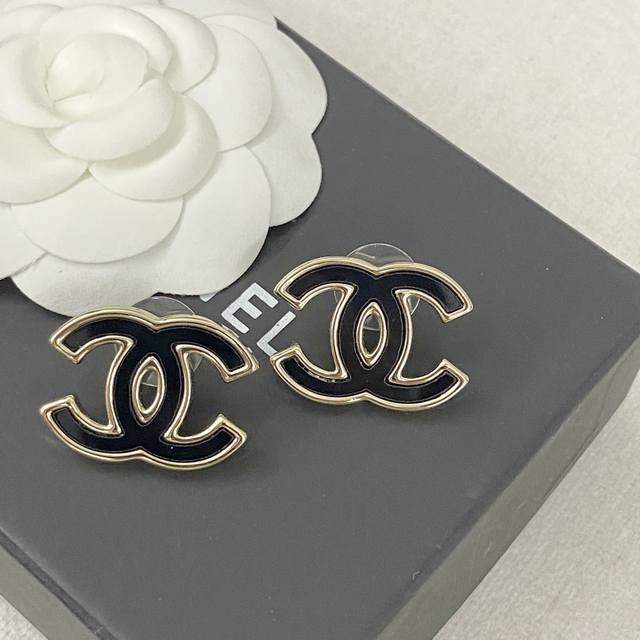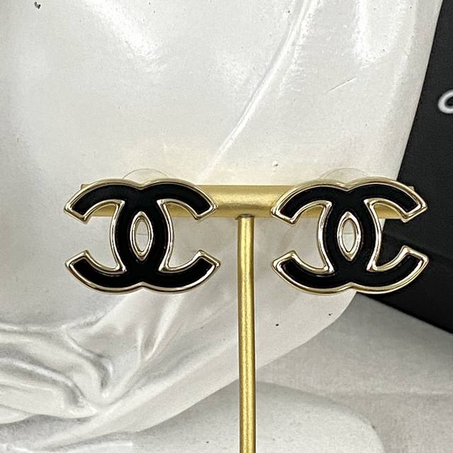 编码E2284 香奈儿耳钉热销款火爆上新 Chan 23 双C黑金珐琅耳钉 经典元素大双C,低调又经典 简约大气,百搭不挑人