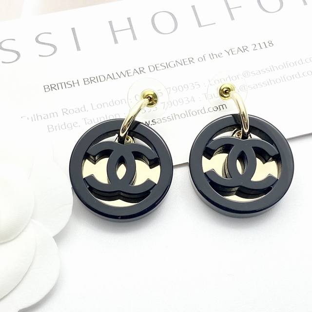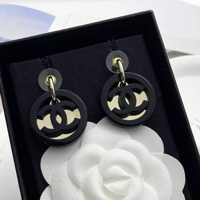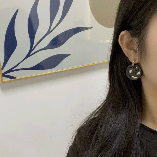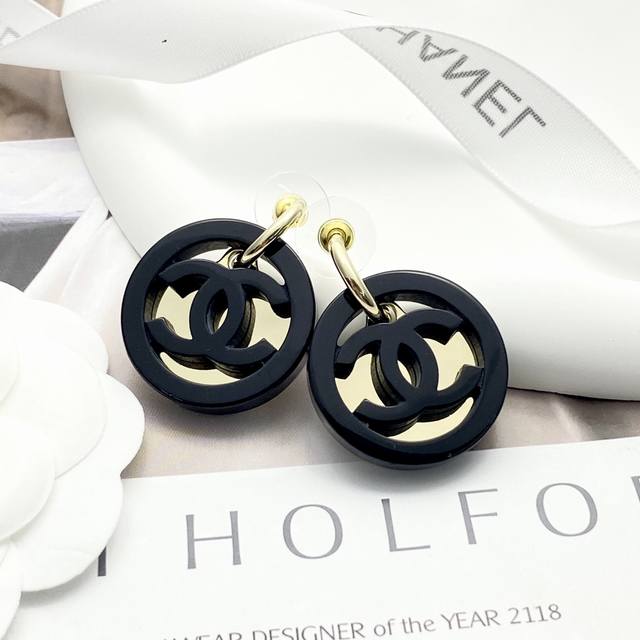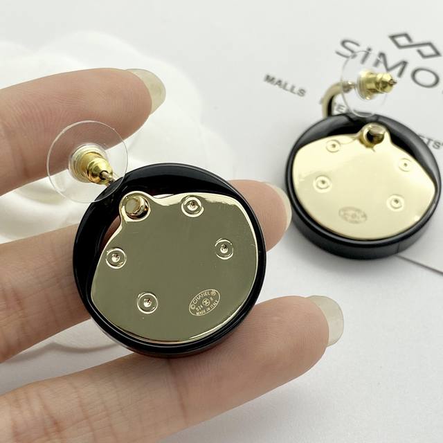Chan 24 亚克力黑金纽扣弯钩耳钉