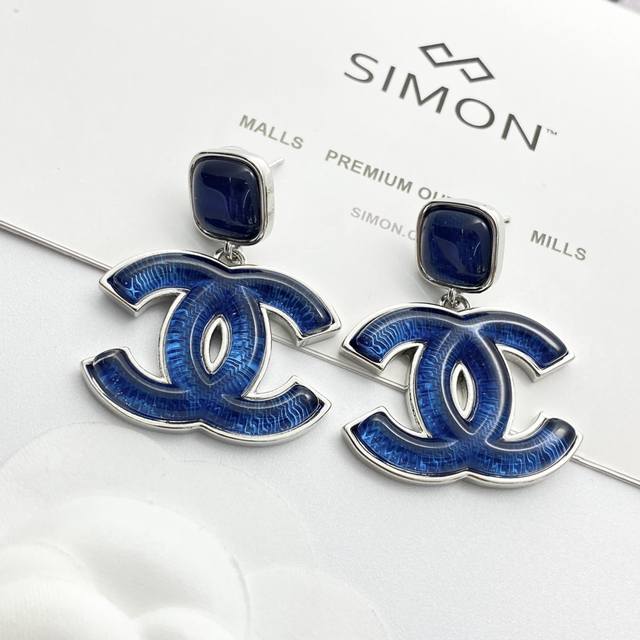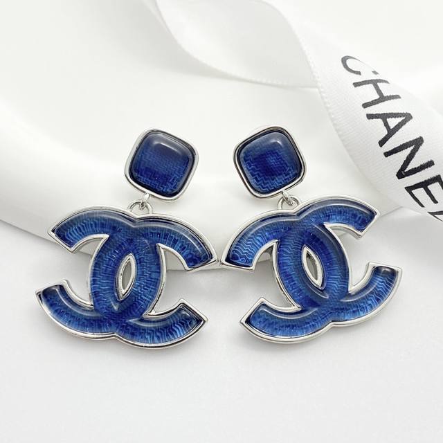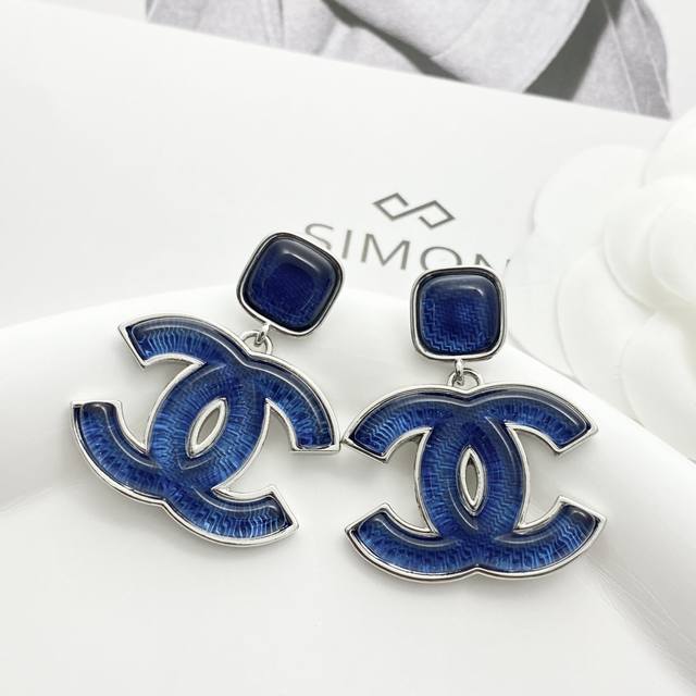 / 编码E2839 香奈儿耳钉热销款爆上新 一致Z Chan 24 银色双C树脂牛仔蓝方块耳环 蓝色牛仔布面料搭配银色金属松弛感拉满 透明树脂封面 上身高级显白显气
