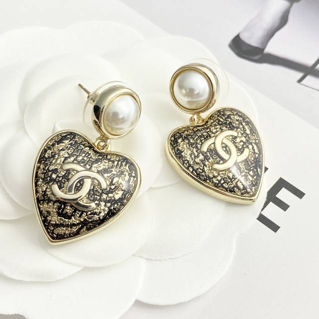 Chan 25 黑金蕾丝爱心珍珠耳钉