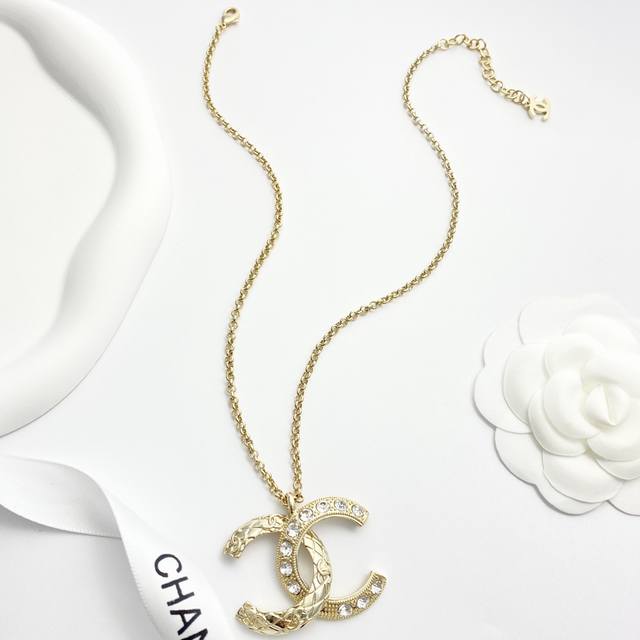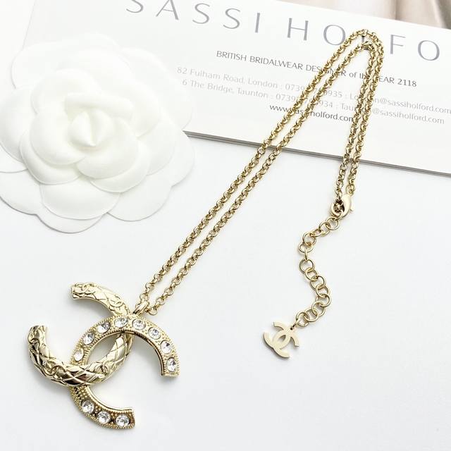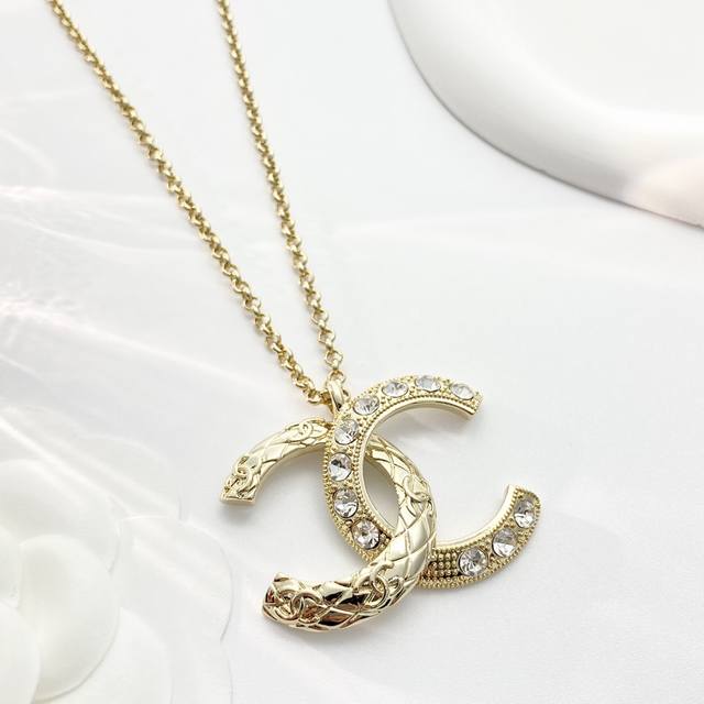 / 编码N1006 香奈儿项链热销款爆上新 Chan 24 浅金菱格纹水钻拼接双C项链 吊坠双C一半C型镶嵌水钻,一半浮雕双C菱格纹 多种经典小香元素结合显得贵气又