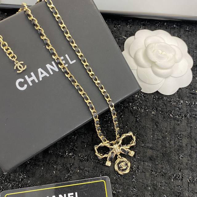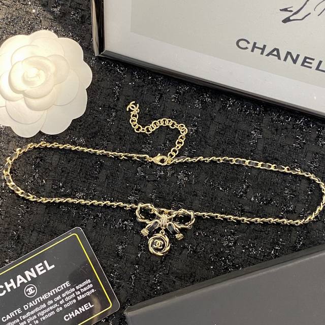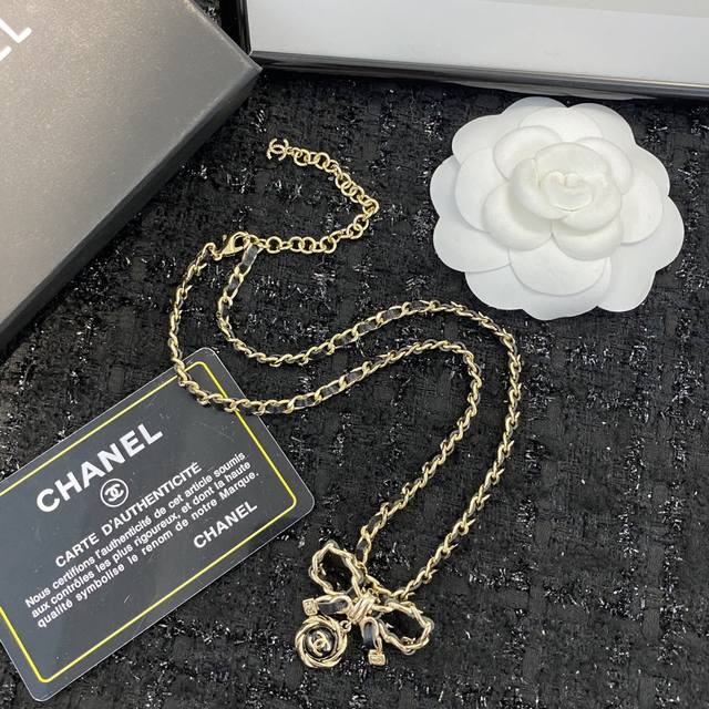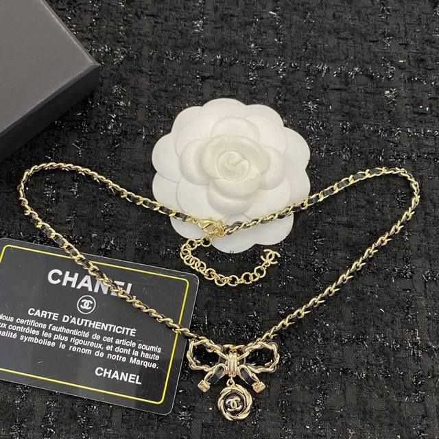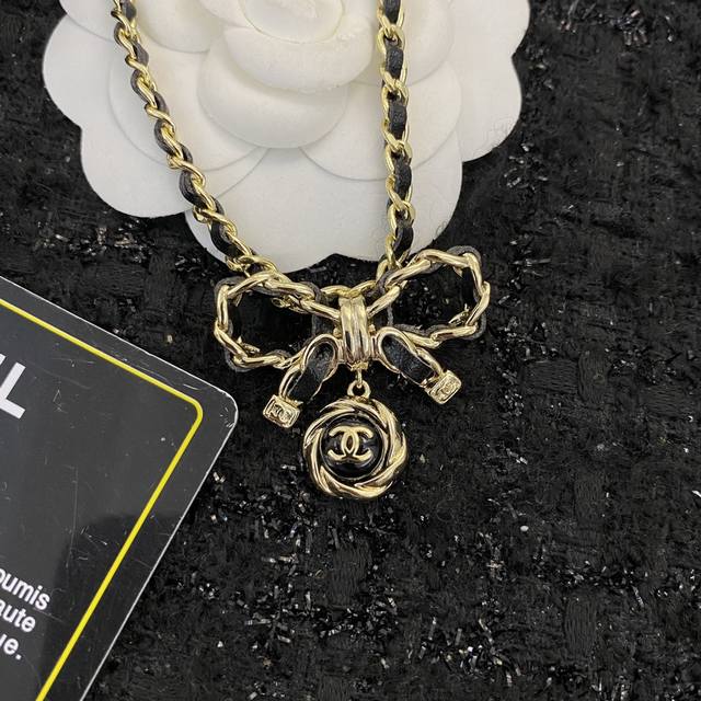 编码N509 Chanel项链热销款火爆上新 蝴蝶结穿皮项链 蝴蝶结元素小穿皮设计,不挑风格不挑搭配 复古黑金蝴蝶结吊坠复古又个性 黑金蝴蝶结好有 Vintag
