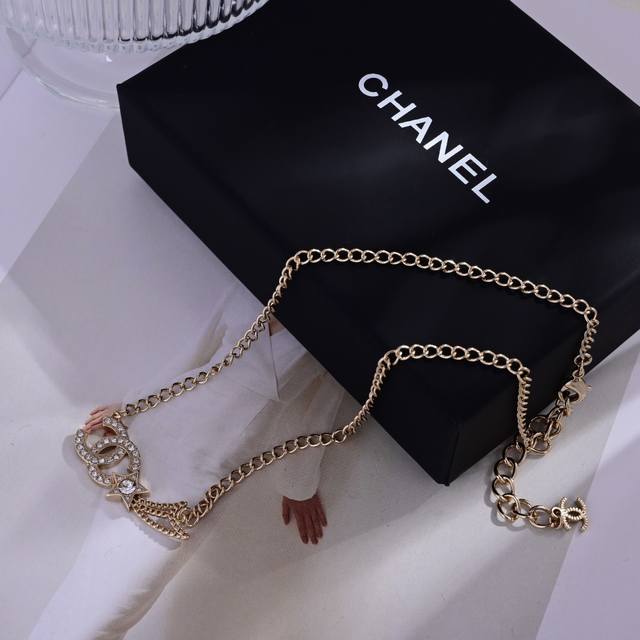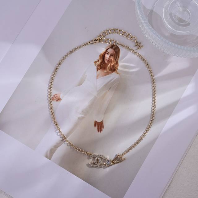 Chanel 最新款金色格子Cc白钻项链 一致Z批黄铜材质