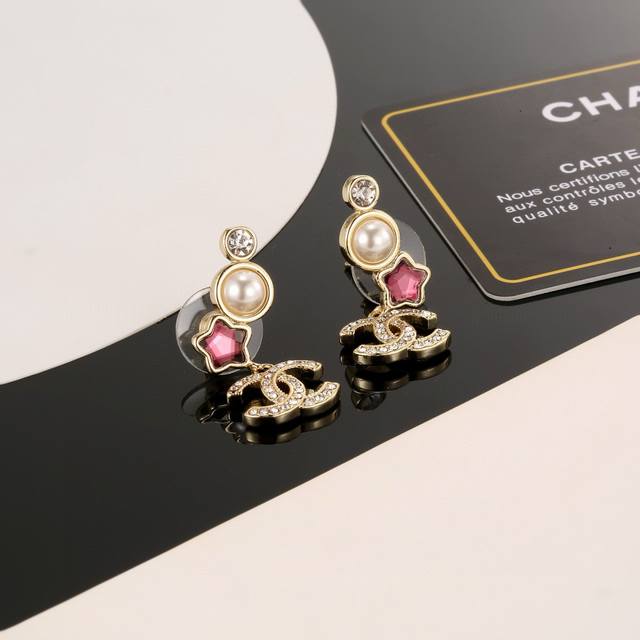 香奈儿彩色星星耳钉 更修饰脸型。以金色金属边环绕给人一种神秘、成熟、复古的感觉。双C金属标志经典百搭!耳钉