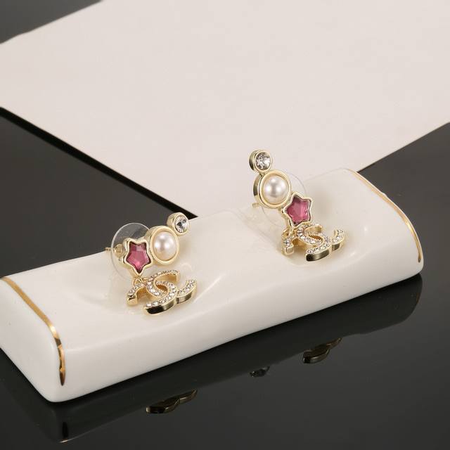 / 香奈儿彩色星星耳钉 更修饰脸型。以金色金属边环绕给人一种神秘、成熟、复古的感觉。双C金属标志经典百搭!耳钉