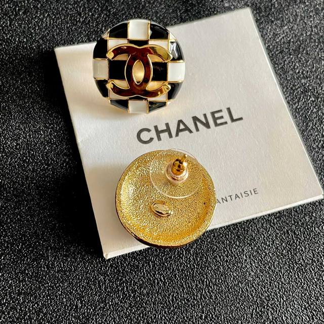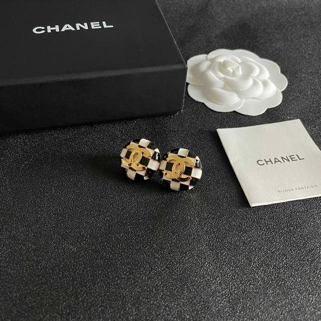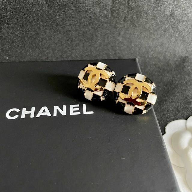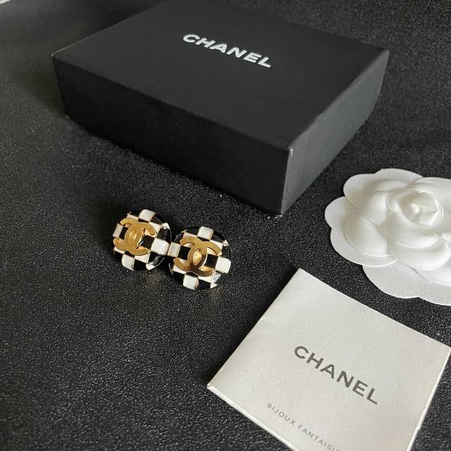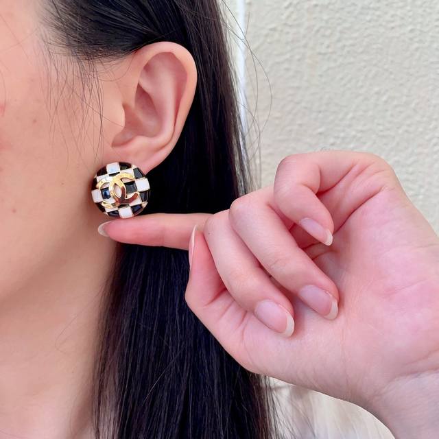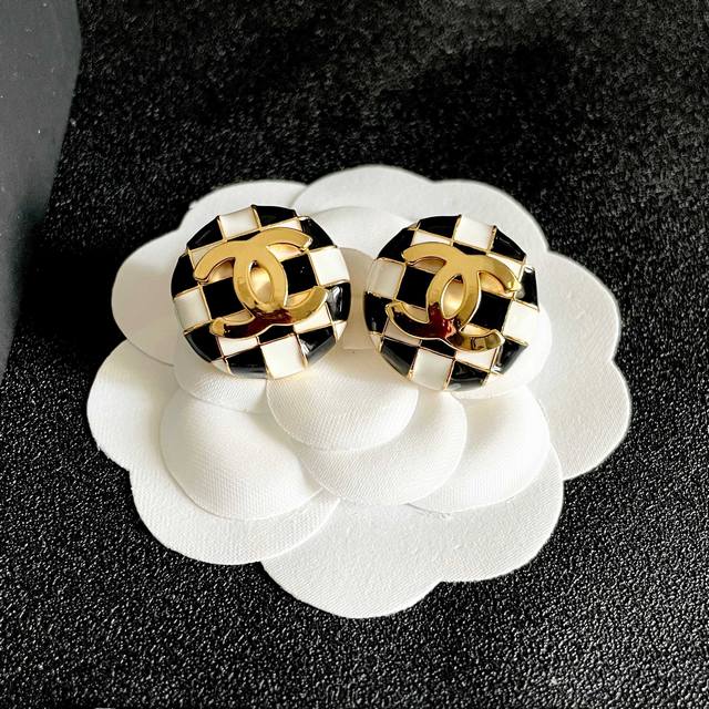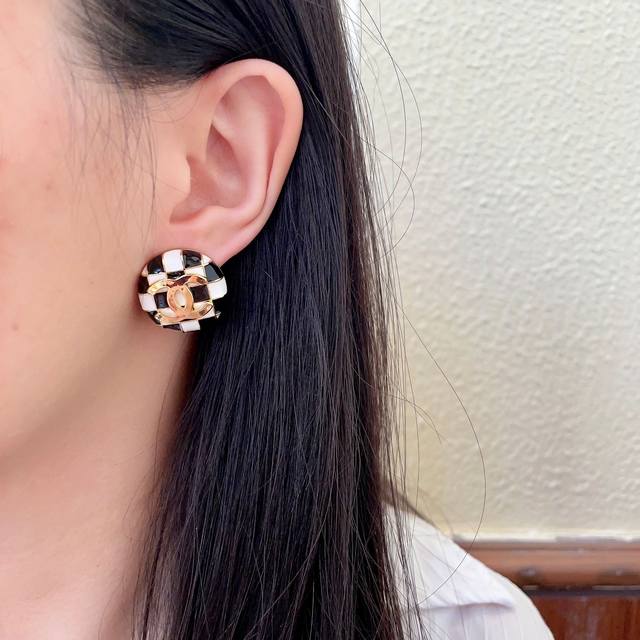 / 香奈儿棋盘格双C耳钉