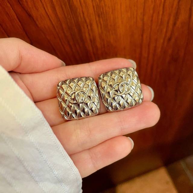 香奈儿棱形格双C耳钉