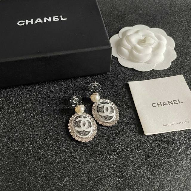 Chane 香 镂空圆环晶钻字母耳钉热销爆上新Chan...