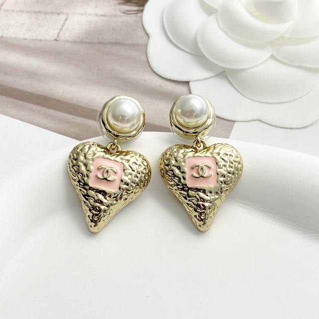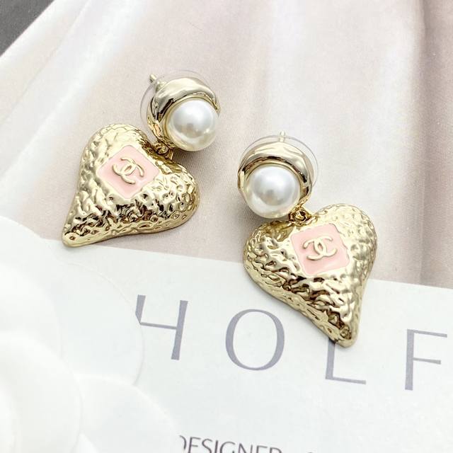 / 香奈儿耳钉热销款爆上新 一致Zp Chan 23K粉色珐琅熔岩爱心耳钉 熔岩珐琅耳钉,闪耀着珍珠的光芒。 两枚精致的小金环,组成一个小巧而精致的形状。 它们象征