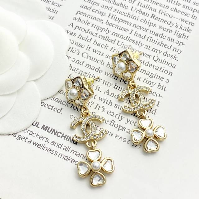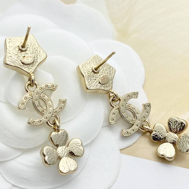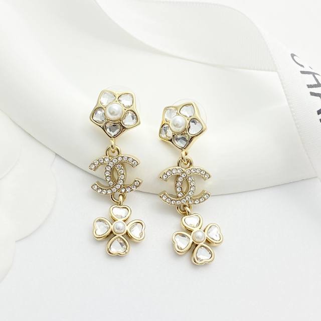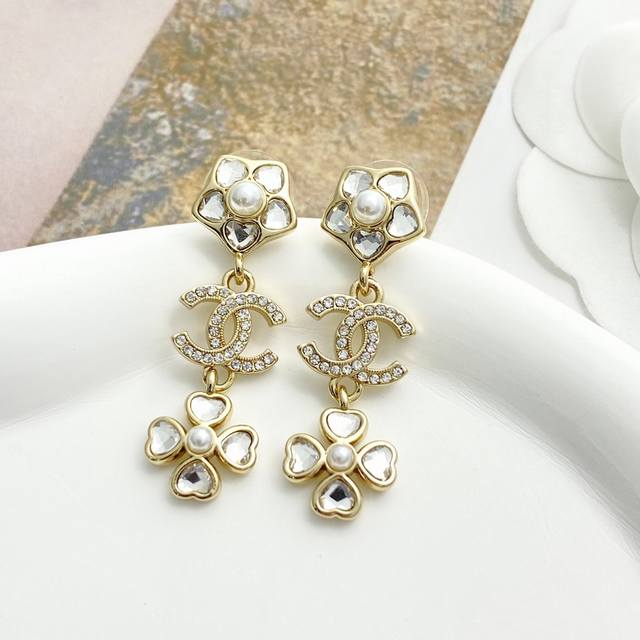 / 香奈儿耳钉热销爆上新Chan 25 爱心水钻花朵吊坠四叶草耳环小花朵搭配流苏四叶草,加以爱心水钻镶嵌,精致灵动非常巧思的设计,闪闪亮亮的同时又端庄优雅上耳超吸睛